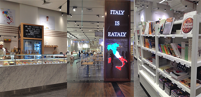 اثنان في واحد، هو ما يتمتع ويمتاز به هذا المطعم عن غيره، ذلك من خلال توفريه مركزا مصغرا لبيع المنتجات الإيطالية إلى جانب المطعم الذي إعتدنا عليه من هذه العلامة التجارية.