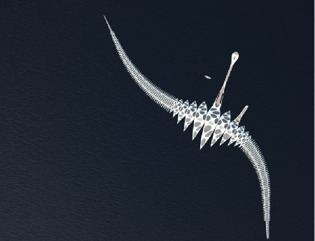 جيانلوكا سانتوسوسو Gianluca Santosuosso، وفيه يتمحور الفندق حول ما يمكن أن نطلق عليه "عمود فقري" بطول نصف ميل كامل! الفندق الفريد من نوعه يمكنه تغيير شكله بناءً على تيارات المحيط التي يبحر بها بسرعة بطيئة نوعًا حول العالم، ما يسمح له بالتوقف في موانئ العالم الرئيسية للسماح لنزلائه بالركوب أو النزول متى أحبوا!