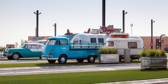 وتضم 10 عربات طعام إلى جانب عدد من المتاجر ومنطقة لعب الأطفال، وأماكن لوقوف السيارات، ودورات مياه مجهزة، وأجهزة صراف آلي.