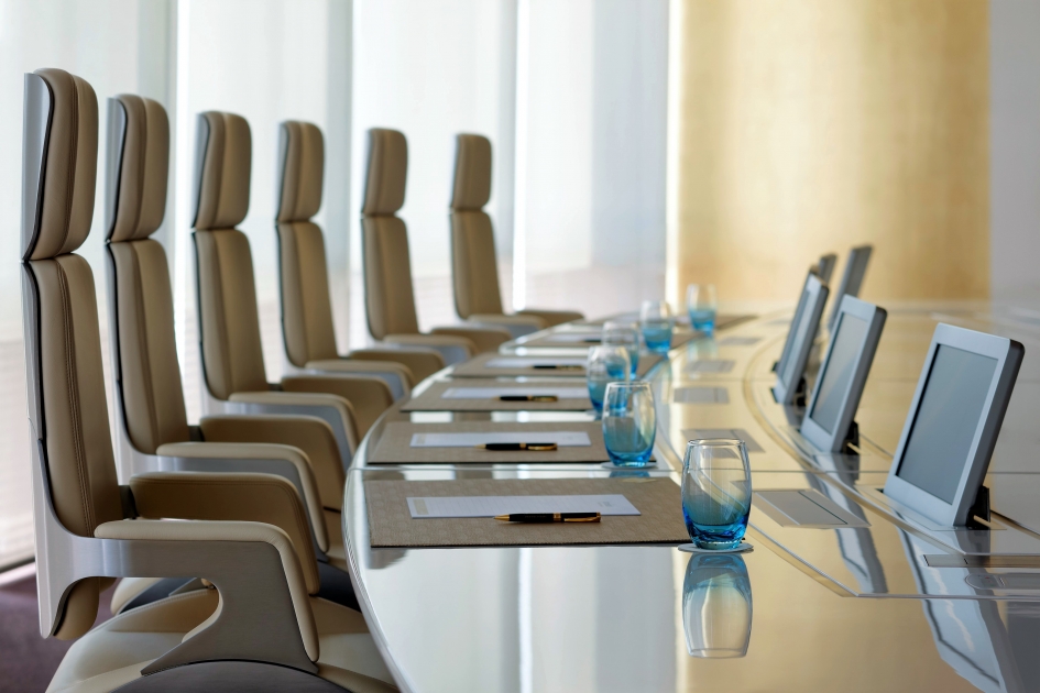وتحتوي بعض الطاولات المختارة في أجنحة رجال الأعمال على لوحات عرض دوّارة مزوّدة بمحركات تؤمن الاتصال بنقاط البيانات ووصلات HDMI ومأخذ VGA ومأخذ USB ومأخذ صوت ومنافذ كهرباء. كما وتمتاز أجنحة رجال الأعمال باحتوائها على ركنٍ للحلويات وقائمة واسعة من المرطبات بالإضافة إلى إمكانية تقديم وجبات الفطور والغداء وكل ما بينهما وذلك لتلبية مختلف متطلبات الاجتماعات.