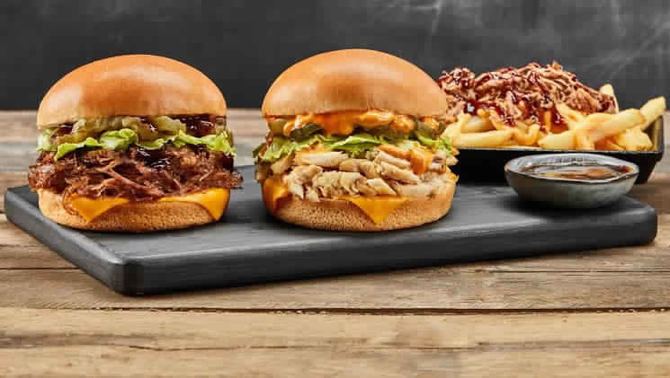 استمتعوا بمجموعة اللحوم المسحبه المصنوعة من لحم البقر او الدجاج الحلال ١٠٠٪ والتي تقدم عند الطلب، بالخس والطماطم التي يتم قطفها محليا وتكون طازجة.