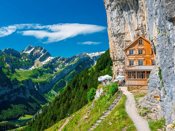 يقع المطعم في أعلى جبال Appenzeller بسويسرا ، وهو فريد من نوعه، إذ بُني مباشرة في الجرف، حيث تشكل الواجهة الصخرية جدار المبنى. يفتح المطعم أبوابه من مايو/ أيار إلى نوفمبر/ تشرين الثاني، ويمكن الوصول إليه عبر التلفريك اللاسلكي حصرًا، يليه السير لمدة 15 دقيقة عبر كهوف “وايلد كيرشلي”. وبمجرد الوصول، يمكن تناول الوجبات الشهية، أثناء الاستمتاع بالمناظر الطبيعية التي تحوط الموقع، لا سيّما بحيرة كونستانس.