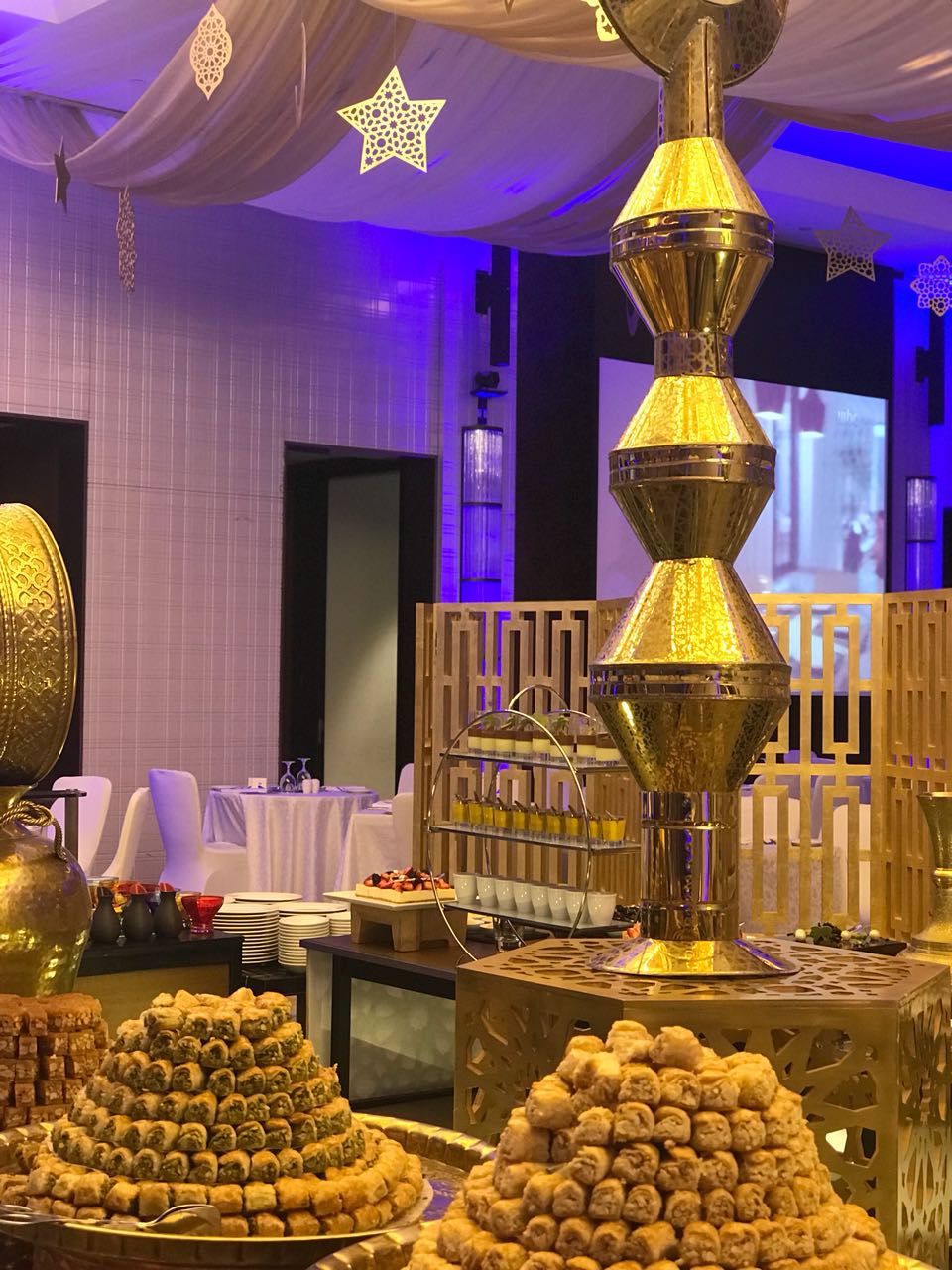وتتجلى روح الأجواء الرمضانية الساحرة بالزخارف التقليدية والفوانيس المضيئة في القاعة الرئيسية، اللؤلؤة، التي جهزت لتستضيف 220 فرد على كل وجبة فطور. ويشمل بوفية الإفطار الشهي خيارات وتشكيلة واسعة من الأطباق العالمية والسعودية التقليدية،ذلك بالإضافة إلى المشروبات الباردة والساخنة كالعصائرالطازجة والقهوة والشاي. ولقد تم تجهيزبوفية خاص للضيوف الصغار لينعموا بتجربة لذيذة وممتعة في آن واحد.