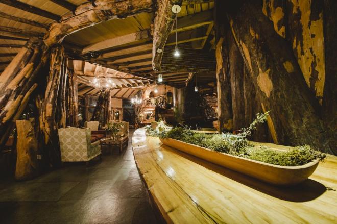 تتخذ غرف الفندق شكلاً غير مألوف حيث إنها تمت صناعتها من الخشب، مما يعطيها طابعاً خاصاً، كما يضم الفندق أيضاً عدداً من المطاعم تقدم أشهى الوجبات وسط الاستمتاع بجمال طبيعة، فضلاً عن احتوائه على شلال اصطناعي يضفي نوعاً من الجمال علي الفندق.