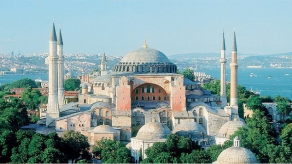 بدأت آيا صوفيا في اسطنبول حياتها في القرن الميلادي السادس ككنيسة عملاقة، وصرح معماري فريد، ثم تحولت إلى مسجد بعد فتح القسطنطينية، ثم تحولت متحفا فنيا في عام 1935 على يد العلماني أتاتورك، وهي تعد من أبرز الأمثلة على العمارة البيزنطية والزخرفة العثمانية. استغرق الأمر خمس سنوات لبناء هذا المبنى الرائع أول مرة، وتشتهر اليوم بالمآذن الأربعة التي تحيط بها. قبة المبنى ترتفع لمسافة 56 متر، ويبلغ اتساع قاعدتها 31 متر.