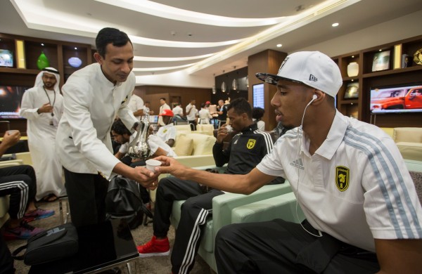 واستمتع لاعبو أقدم وأكثر نوادي كرة القدم السعودية شعبية، لحظة وصولهم مطار العاصمة الإماراتية، ببعض الخدمات التي توفّرها الشركة في صالة القادمين الفاخرة.