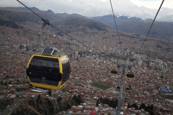 ناضلت مدينة لاباز في بوليفيا طويلاً مع مشاكل التنقل، وذلك بسبب تضاريسها شديدة الانحدار، وكثافتها السكانية العالية، التي تجعل الحركة بالسيارة والحافلات كابوساً للسائقين والركاب، وصعوبة الوصول إلى جميع المناطق حتى في السيارات الخاصة.