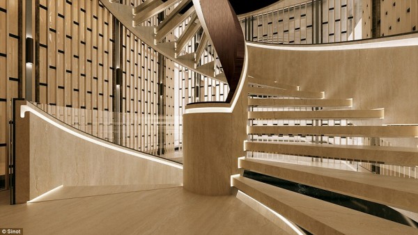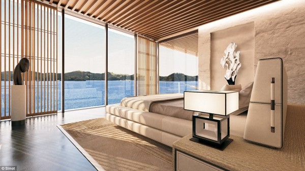 وقال مصمم اليخت الهولندي “سيندر سينوت”: أن كل طابق من الستة له وظيفة محددة، فهناك طابق يضم شاطئ صناعي في منتصف السفينة ومكانا للزوار مع حمامات خاصة ومسبح، وآخر يضم أماكن تناول الطعام والبارات وحديقة وصالة ألعاب رياضية وحمام سباحة خارجي، وأيضا هناك طابق غرفة القيادة، وتشمل الطوابق الأخرى على صالة ألعاب للأطفال ومكتبة ومكتب، وسطح خارجي مع مقاعد.