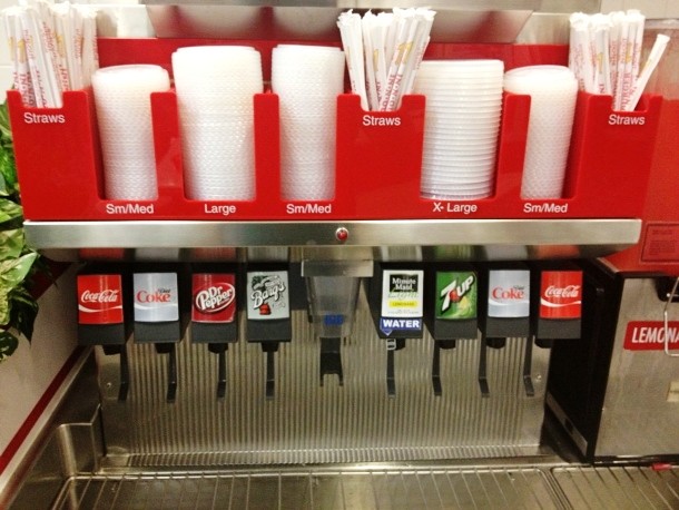 في المطاعم السريعة هناك سياسة المشروبات المجانية، مثال على ذلك كلما فرغ كأس الكولا يمكنك أن تملأه وبدون دفع مقابل .