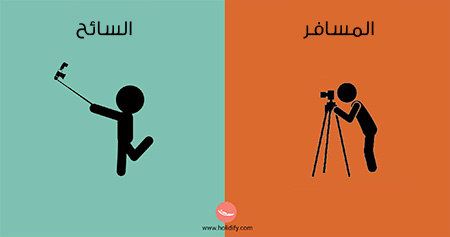 الكثيرون لا يعرفون ما هو الفرق الحقيقي بين المسافر والسائح ، أو حتى يعتقدون بأنهما نفس المعنى. من أجل ذلك قام موقع Holidify المتخصص في السياحة والسفر بنشر مجموعة من البوسترات التوضيحية لعرض الاختلافات الرئيسية بين هذان النوعان من الناس، والتي تجسد التجارب والأفعال التي يميل كل من المسافر والسائح إليها.
