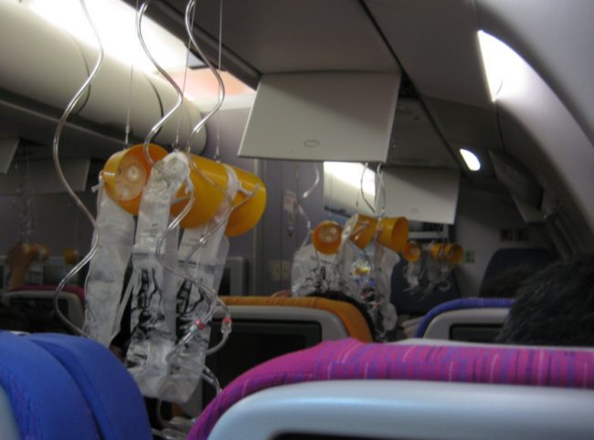 فالطائرة مضغوطة من الداخل، وهذا هو الذي يساعدنا على التنفس بشكل جيد. وحين يحصل اصطدام في الطائرة، فإنها ستفقد الضغط، وبذلك ستفقد قدرتك على التنفس، والذي من الممكن أن يسبب لك الاختلال العقلي!