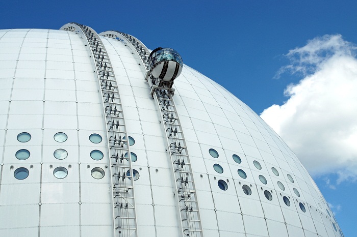 أكبر مبنى نصف كروي في العالم ويقع في ستوكهولم، السويد، ويبلغ ارتفاعه 279 قدم وقطره 361 قدم. ويتميز هذا المبنى بمصعده الزجاجي الذي يُعطي الزوار رحلة مدتها 20 دقيقة على طول القبة.