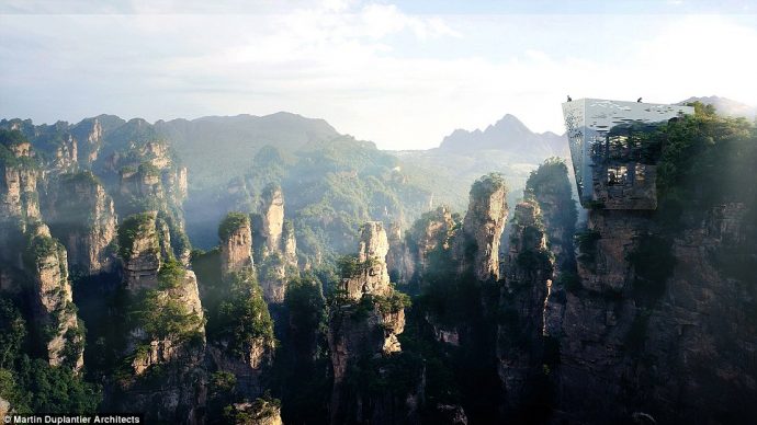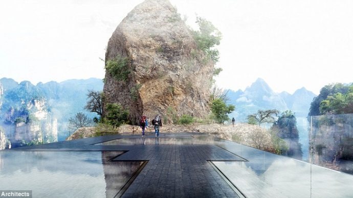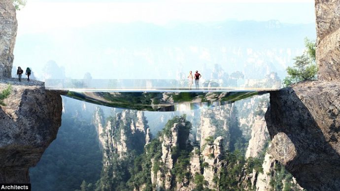 تم تصميم الهيكل الشفاف لينسجم مع المناظر الطبيعية في جبال تشانغجياجيه، وسيكون معلقا بين قمتي جبلين، وسيكلف بناؤه ما يقارب 5 ملايين دولار، وسيتم إنشاؤه من قبل مارتن Duplantier للهندسة (MDA) وDaqian Landscape للهندسة، الذي فاز في مسابقة التصميم.