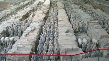 جيش تيراكوتا قد نحت ودفن بجانب قبر الامبراطور كين شين أول أمبراطور فى الصين فقد عرف جيش الطين فى الصين بأمنه أكبرمتحف للجنود والتى قد تم بناءه يعدد لابأس به من العمال حوالى 700,000 شخص لبناء هذه التماثيل الطينية التى قد صنعت ببراعة فائقة لا أحد يتخيل كيف بكهف يحفظ الحرارة لكى لاتهدم هذه التماثيل ولا تنكسر فعدد السياح الذاهبين فى رحلات الصين يتعدى العشر ملايين سنوياُ.