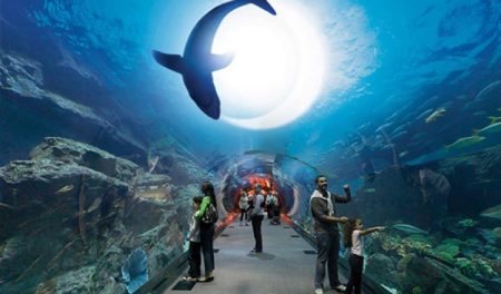 اكواريوم الشارقة، رغم أنها صغير الحجم مقارنة مع أحواض أخرى في المنطقة ولكنها وجهة لا ينبغي تفويتها خصوصا إذا كنت برفقة العائلة والأطفال لتعريفهم بالحياة البحرية المتنوعة في هذا الحوض مثل أسماك القرش وأفراس البحر والموراي وغيرها.