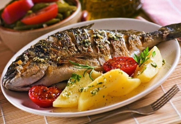 سمك الدنيس بالفرن المكون من سمك الدنيس وبلح البحر، مطهو داخل ورق الشواء مع البرغل، والشمرة، والكبر، وسمك الأنشوفة، والمزين بصلصة أرابياتا الحارة – بقيمة 75 درهم.