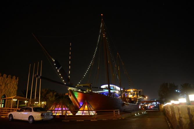 مطعم البوم هو واحد من المطاعم العديدة الموجودة في فندق راديسون بلو، ويقدم المطعم أفضل أطباق المأكولات البحرية والستيك، وهو مطعم شرق أوسطي يقع داخل مركب شراعي كويتي قديم. قائمة الطعام المقدمة ذات سعر محدد مسبقاً، وتشمل تقديم الخبز الساخن والزبدة بالثوم عند الوصول، بوفية مقبلات كبير، بجانب اختيارك من شرائح اللحم، السلمون، لحم الضأن، الدجاج أو ذيل الكركند المشوي على الفحم مع تشكيلة واسعة من الحلويات. وبعد العشاء يتم تقديم القهوة والتمر، ويتم إعطاء الزبائن مركب صغير كهدية.