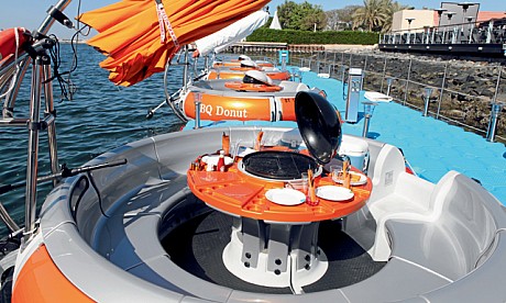 حيث يمكنك الاستمتاع بالشواء الذي تحبه بطريقة مميزة بالقفز على أحد القوارب المستديرة بشكل الدونات وتناول المشويات التي تفضل مع جولة رائعة في الجونة بدبي.