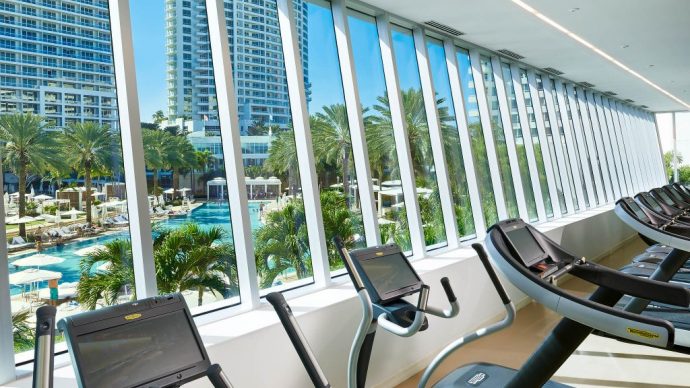 يتميز فونتينبلو ميامي بيتش المواجه للشاطئ بإطلالة ذات مناظر خلابة على المحيط ويضم 6 مسابح خارجية تحيط بها كابينات خاصة، ويقع على بعد دقائق من الشاطئ على ساحل فلوريدا، وهو مكان إقامة يعود بناؤه إلى 1954.