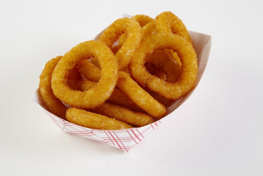 ما ينطبق على رقائق البطاطا ينطبق على حلقات البصل، بالإضافة إلى الرائحة المنفرة الصادرة عن البصل.