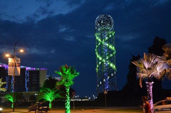 برج الحروف الابجدية الجورجية في باتوميAlphabetic Tower يعتبر من رمزاً لمدينة باتومي واحد اماكن السياحة في باتومي التي تستحق الزيارة