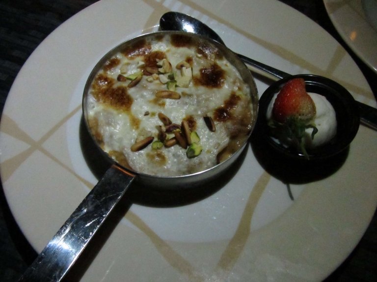 وبالنسبة للحلويات، لقد طلبنا كعكة شوكلت براوني مصنوعة من عجينة الشوكولاة الداكنة مع اللوز تقدم مع فانيليا الآيس كريم وصلصة الكراميل اللذيذة، وطبق أم علي وهي من الحلويات العربية المشهورة المصنعة من بودينغ الخبز والحليب، ولقد تم تقديمها لنا مع ايس كريم ماء الورد وفتات اللوز، حيث تمتعت الحلويات بمذاق يسر القلوب من لذة الطعم.