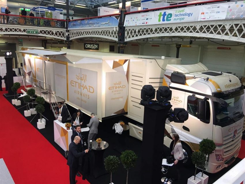 بالصور .. طيران الاتحاد يطلق معرض متنقل رائع في سوق السفر العربية
