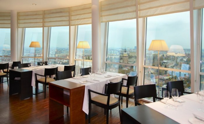 بهذا الارتفاع الفريد في أحد البنايات الراقية في فيينا يمنحكم مطعم Das Turm متعة بصرية مذهلة للعاصمة النمساوية في خلفيتها أجواء المكان العصرية.