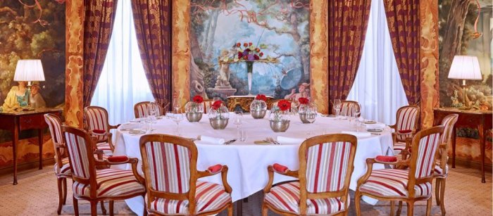 الفخامة الكلاسيكية في أبهى صورها تتجلى في مطعم Anna Sacher الراقي الواقع في فندق Sacher Wien الأنيق في فيينا والحائز على جائزة ميشلان.