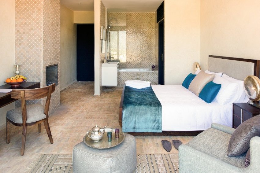 المساحات الداخلية في الفندق تؤدي بسهولة إلى المناطق الخارجية الأنيقة التي تطل على جبال أطلس المغطاة بالثلوج، وكل جناح فاخر هو ملاذ هادئ ومهدئ.