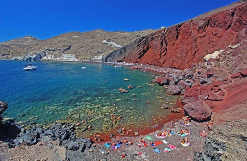 يعتبر الشاطئ الأحمر هو أكثر الشواطئ شهرة وجمالا في سانتوريني ، والذي يقع على بعد خطوات من أكروتيري القديمة . الشاطئ جميل وفريد من نوعه ، لكنه صغيرة جدا مما يتسبب في مشكلة الازدحام ، ومع ذلك ، فإنه جميل ويستحق الزيارة .