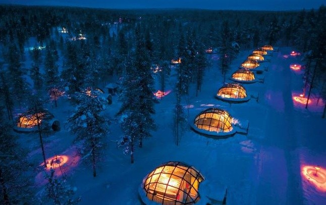 يقدم هذا الفندق للسائح المقيم فيه منظراً رائعاً لأجواء فلندا الشمالية، وهو عبارة عن مجموعة من القباب الموزعة في تناظر مدهش، وتمنح الزوار فرصة فريدة لمتابعة أضواء الشمال الرائعة.