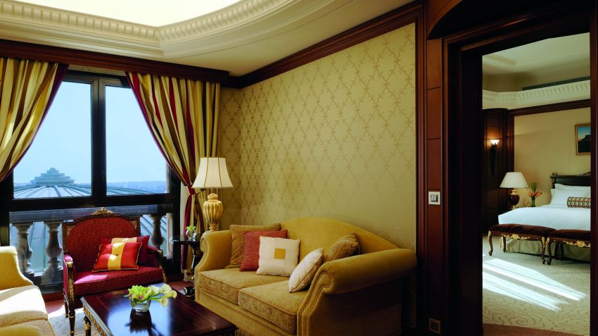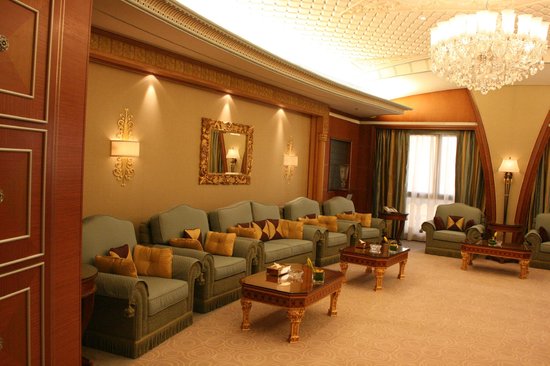 يضم الجناح الفخم غرفة طعام فسيحة تتوسطها طاولة طعام خشبية كبيرة مزينة بباقة من الزهور، وطبق من الفواكه الغريبة، ومنطقة معيشة بأرائك وثيرة و كراسي فاخرة مع وسائد فخمة، وهي مجهزة بنظام للسينما المنزلية ومنطقةً للأعمال.