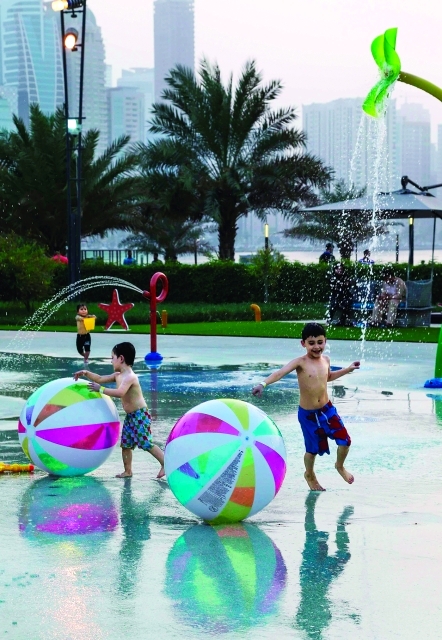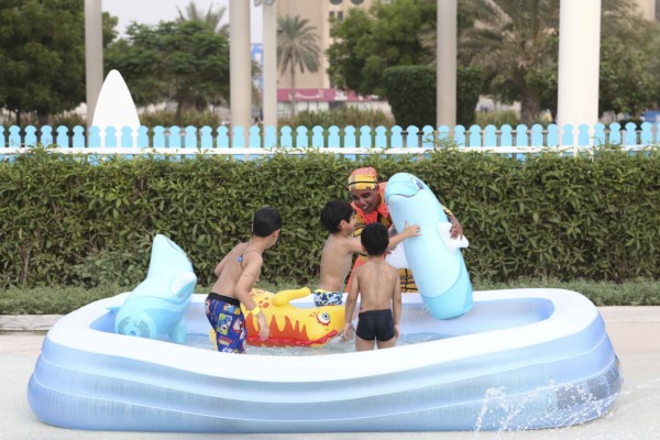 بالصور .. استمتع بالالعاب الجديدة في حديقة الألعاب المائية المصغرة في واجهة المجاز المائية