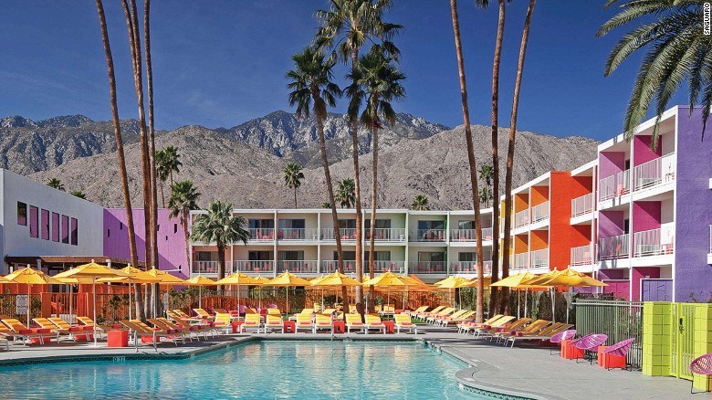 The Saguaro، بالم سبرينغس: ساجوارو في بالم سبرينغس هو على الأرجح الفندق الصحراوي الأكثر ألوانا في العالم مع واجهة مستوحاة من الزهور البرية وفن البوب من ستينات القرن الماضي، وقد أنشئ على خلفية جبال سان جاسينتو.