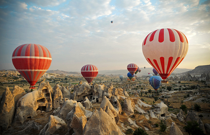 كابادوكيا، تركيا: نحن على يقين بأنك رأيت صور هذه المنطقة التركية الجميلة، تبعد مسافة ساعة واحدة من مدينة قيصري في الأناضول. برزت هذه المملكة القديمة منذ أكثر من 3500 سنة، وهي تضمُّ مساكن وكهوفاً فريدة وصخوراً بركانية. ومناظرها الطبيعية تترك ما يقرب من المليون زائر منبهراً أكثر من أي وقت مضى. وأفضل طريقة لاكتشاف كابادوكيا هي عبر الصعود إلى منطاد الهواء في رحلة تستمر 95 دقيقة، لترى أحد أجمل مواقع التراث العالمي وفق اليونسكو وتجربة واحدة من عجائب الدنيا بلا منازع في العالم.