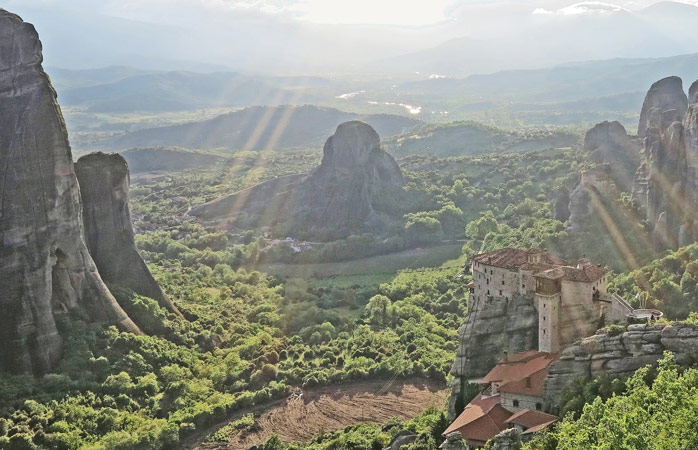 أديرة ميتيورا، اليونان: ستجد في هذه المدينة الأديرة الأرثوذكسية القديمة المرتفعة مثل مبنى مؤلف من 1200 طابقاً، يعود تاريخها إلى القرن الـ14. وتزعم الروايات بأنَّ أول ناس سكنوا المنطقة في القرن التاسع ميلادياً وعاشوا حياة شبيهة بالنساك في الكهوف الصغيرة.