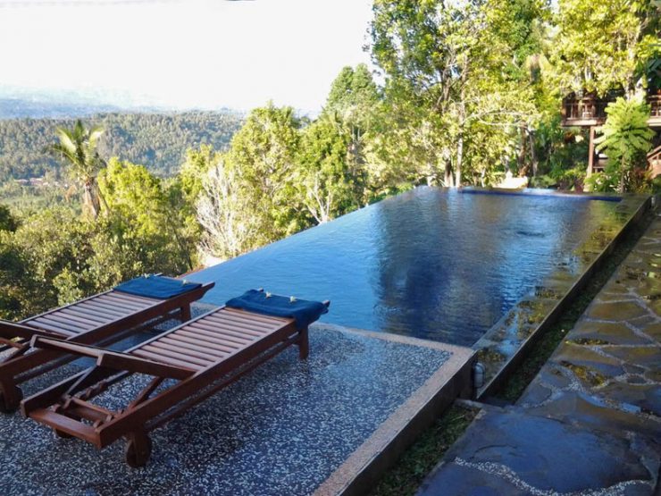 من الفنادق الجميلة لها جمال تقليدي يقع وسط الغابة الخضراء ، حول الفندق تطل الجبال البركانية والسهول الخضراء ، يوجد أجنحة خاصة مصممة بشكل تقليدي راقي من الأخشاب العتيقة في الصباح يمكنك الاستمتاع بوجبة الإفطار في الهواء الجبلي الطازج والبارد والاستمتاع بالمناظر الطبيعة الخلابة يوجد مسبح لا نهائي بالروف أمام الفندق مساحات واسعة من البراري على عكس الحرارة الاستوائية في بالي فيمتاز المكان بالجو الجميل والهواء المنعش بسبب الارتفاع عن سطح البحر وتكلفة الإقامة اليومية 64 دولار .