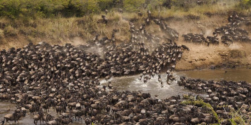 تمثل الهجرة الكبرى أحد أكثر مشاهد الحياة البرية المثيرة للإعجاب على وجه الأرض، حيث تقوم مئات الآلاف من الحيوانات البرية برحلتها السنوية من تنزانيا إلى كينيا،  بما في ذلك الحمار الوحشي والغزال، ويعد شهر يوليو هو الوقت الأمثل لمشاهدة هذه الحيوانات وهي تحاول عبور نهر مارا الملقب بـ”نهر الموت” ، وهي رحلة محفوفة بالمخاطر، إذ تتعرض الكثير من الحيوانات للغرق والهجوم من قبل التماسيح الجياع التي تختبأ في الماء.