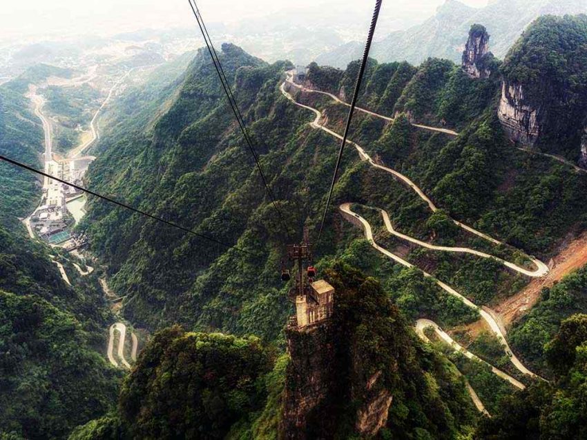يبلغ طول طريق تيانمن بطول 11 كيلومتر، ويقع على ارتفاع كيلومتر واحد فوق سطح البحر، ويشتهر بانحناءاته ومنعطفاته الخطيرة التي يصل عددها إلى 99 منعطفاً حاداً حول جبل تيانمن، مما يشكلّ تحديّاً كبيراً أمام سائقي السيارات هنا. يلقب الطريق بـ”بوابة السماء”.