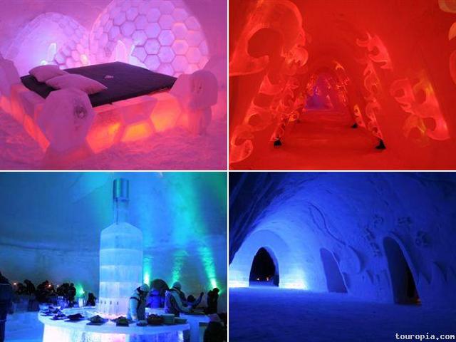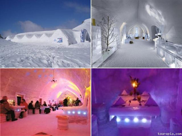 9_ فندق الثلج يوجد في قرية صغيرة من Jukkasjärvi في شمال السويد وهو أول فندق جليد في العالم وأول افتتاح له في عام 1990 , ويتم إعادة بناؤه كل عام من ديسمبر إلى أبريل ويتكون الفندق بأكمله من كتل الجليد المأخوذة من نهر تورن المجمد .