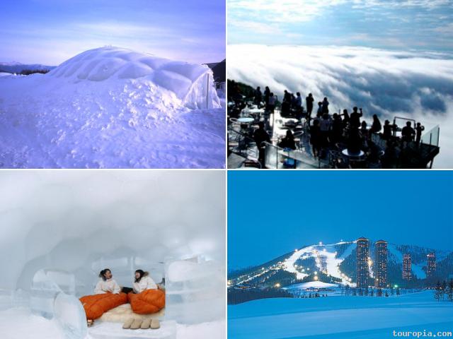 2_ منتجع هوشينو تومامو يوجد في اليابج ان في قرية ثلج خاصة حيث يمكن للنزلاء البقاء في الفندق حيث يتم إجراء كافة غرف الطعام وغرف النوم والحمام من الثلج , ويتم تقديم العشاء على صفيحة جليدية , وتتكلف قضاء ليلة في الفندق حوالي 603 دولار .