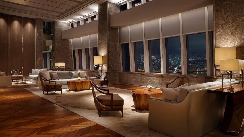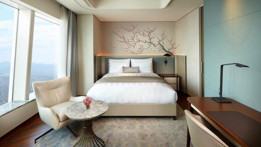 يحتل الفندق مساحة شاسعة في البرج تشمل الطوابق من 76 إلى 101، وتحتوي جميع الغرف المفروشة بالسجاد على ميني بار وثلاجة وآلة صنع القهوة وصندوق ودائع آمن وتلفزيون بشاشة مسطحة، كما يشتمل الحمام الداخلي على مختلف المرافق و التجهيزات الضرورية.