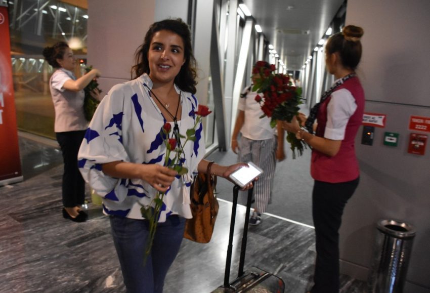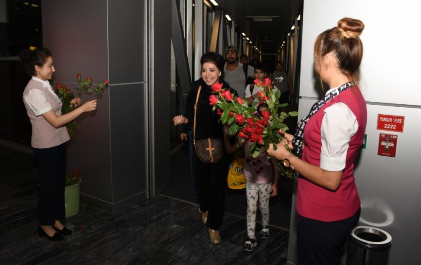 واستقبل مسؤولو الشركة التركية والمطار مسافريهم القادمين من الكويت على متن الطائرة، ووزّعوا عليهم الورود.