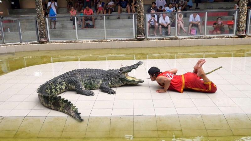 سري أيوثايا.. مزرعة تماسيح تعمل منذ 35 عاماً في تايلاند التي تضم بعضاً من أكبر مزارع التماسيح في العالم تجتذب السياح وتدر دخلاً للبلاد.