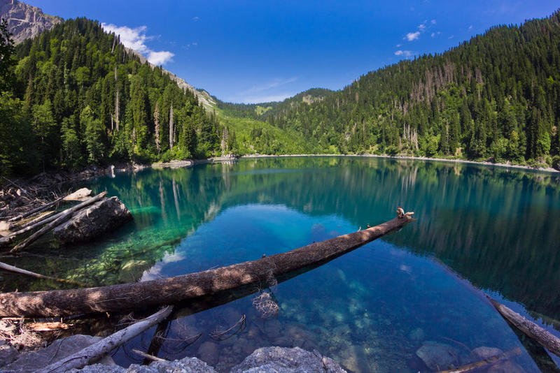 بحيرة “ريتسا”: في جبال القوقاز، وتحديدًا في الجزء الشمالي الغربي من “جورجيا”، تحيط الغابات الجبلية المختلطة بالبحيرة، وتتألق المروج عند السفح. و”ريتسا”، هي واحدة من البحيرات الأعمق في “جورجيا”، إذ يصل عمقها إلى 116 مترًا، وغنيّة بسمك السلمون المرقّط. وهناك، يُسجّل متوسّط درجة الحرارة السنوية في المنطقة 7.8 درجات مئوية، وتصل الحرارة في يناير/كانون الثاني إلى -1.1 درجة مئوية، فيما ترتفع في أغسطس/آب إلى 17.8 درجة مئوية.