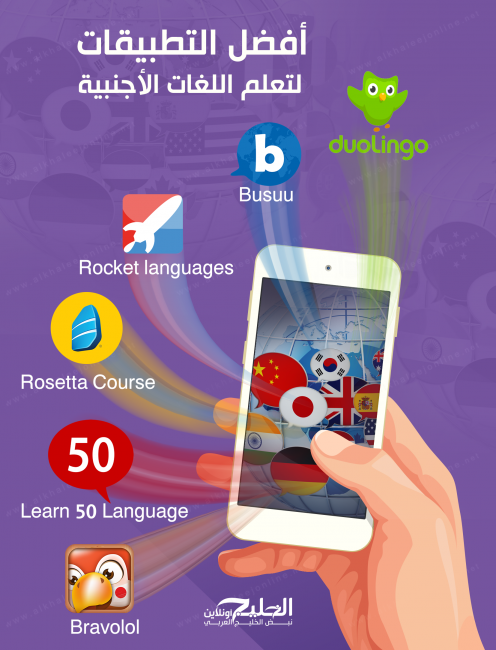 وفي هذا الإنفوجرافيك الذي أعده فريق الملتيميديا في “الخليج أونلاين”، أفضل التطبيقات التي تساعدك على تعلم اللغة الأجنبية.