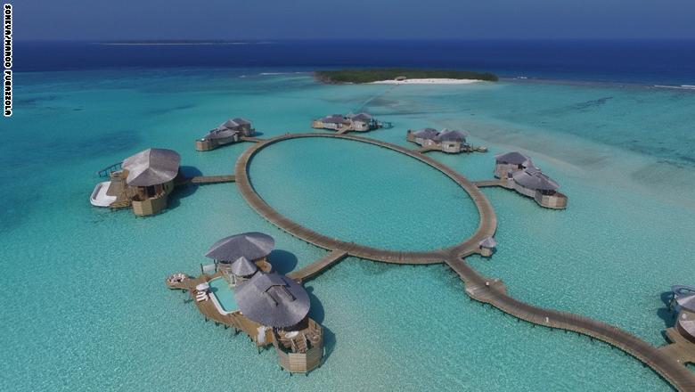 منتجع سونيفا فوشي، جزر المالديفتعتبر جزيرة، كونفونادهو، إحدى جزر المالديف في المحيط الهندي، حيث ظلت مهجورة إلى حين أن قرر الزوجان سونو وإيفا شيفداساني بناء أول منتجع في المنطقة، وكانت هذه الفكرة من أولى خطواتها في اتجاه دعم العطلات الفاخرة بيئياً. ويقوم الزوجان بإعادة تدوير 90 في المئة من نفاياتهم، بما في ذلك، إعادة تدوير 100 في المئة من نفايات الطعام المزروعة في الحدائق العضوية في الجزيرة. أما بالنسبة إلى بناء المنتجع، فهو مغلف بالستايروفوم. ويعمل نظام الطاقة الشمسية على توفير جميع الاحتياجات الكهربائية للمنتجع، وتتم تحلية المياه المستخدمة بنسبة تصل إلى 100 في المئة.