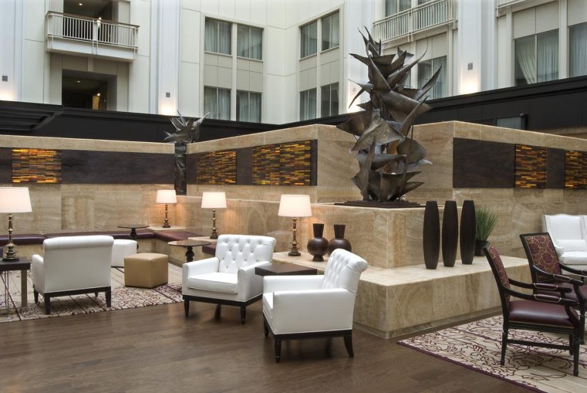 تطل الغرف الخارجية على مناظر خلابة للمدينة، في حين تطل الغرف الداخلية على منطقة اللوبي ذات السقف الزجاجي.