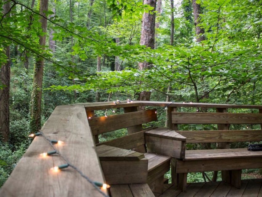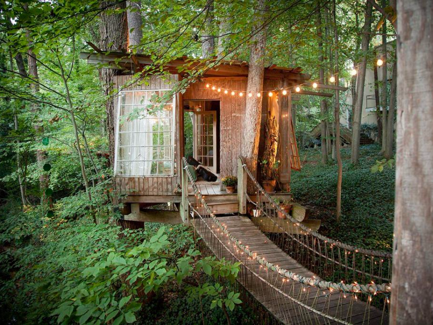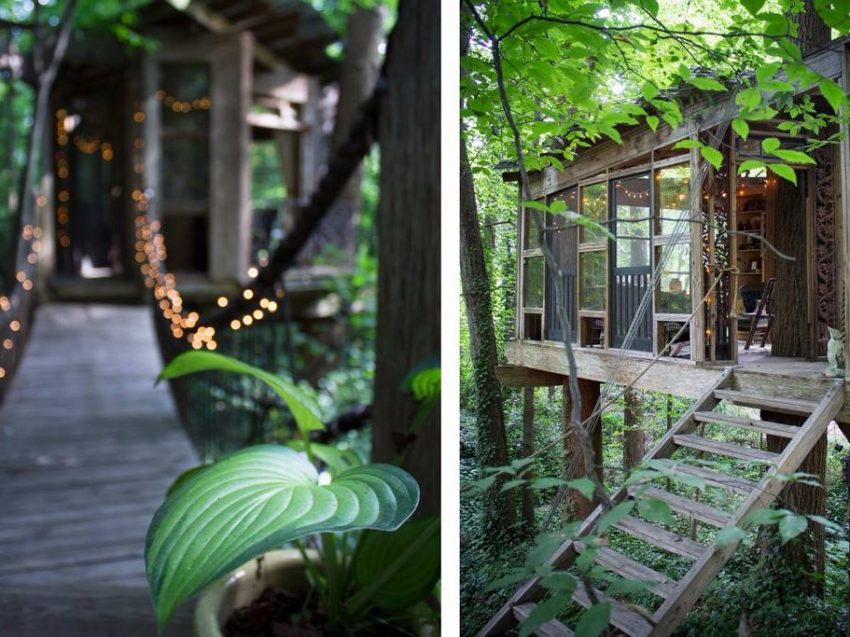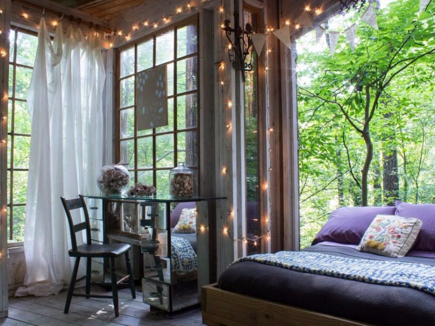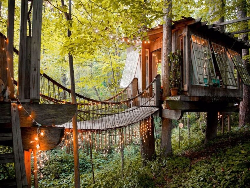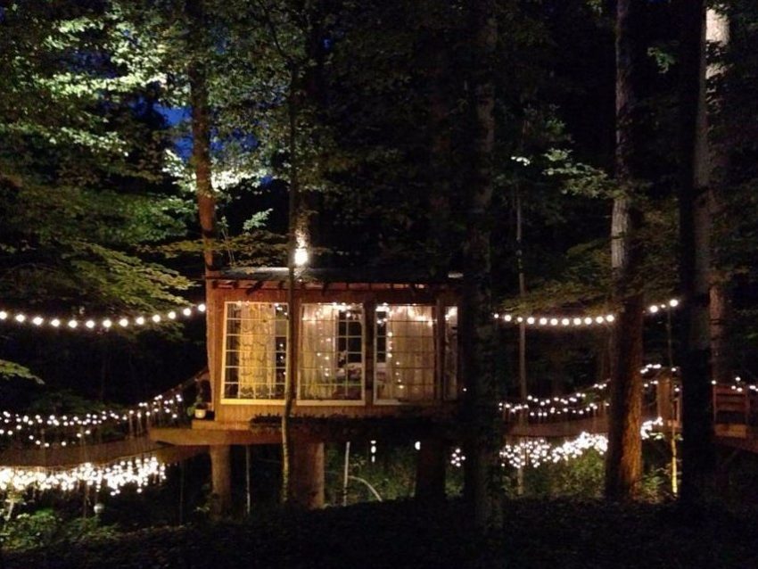 سلاسل من الضوء تضيف طبقة أخرى من الرومانسية  إلى منزل الشجرة.
